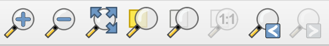 Toolbars - The toolbar is the area at the top of your QGIS application with all the icons. The toolbar actually contains multiple toolbars, which are groups of icons that, when clicked, allow you to navigate around your map canvas, make click-based selections, edit layer geometries, create spatial bookmarks, and much more. You can customize this area of your GUI to fit your needs, adding and removing sets of tools by clicking on the great area of the toolbar.