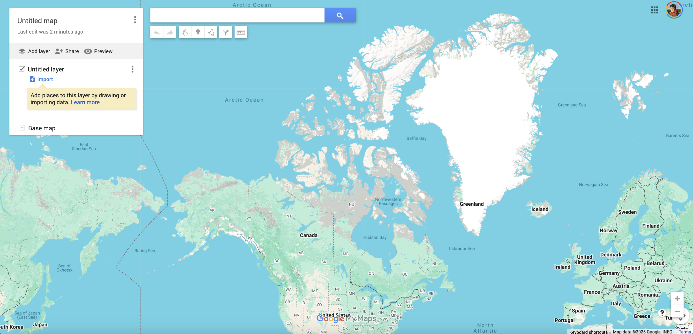 Alternatively, you can search for a place in the search bar, then choose to add it to your map. If you add it to your map as a marker, it will nest under your first Untitled layer.