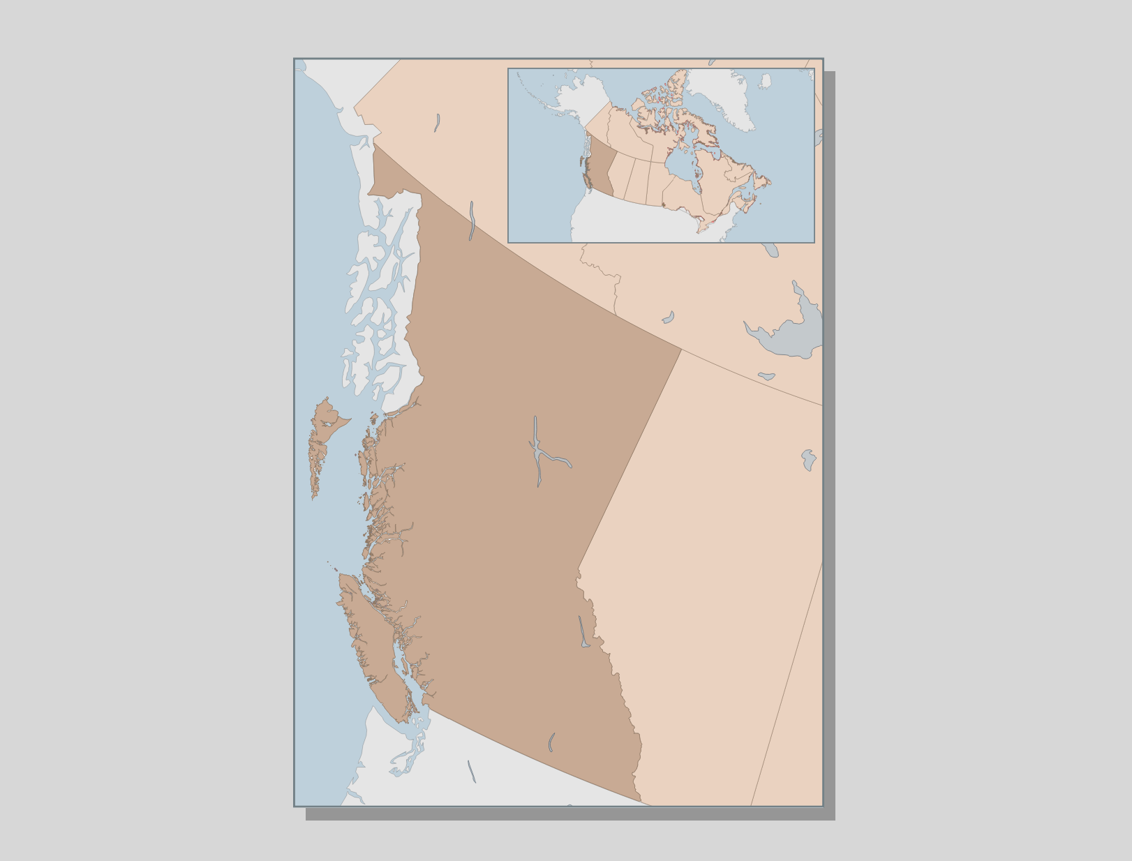 This page will demonstrate how to create map insets using British Columbia as an example. If you did not create a data layer of just British Columbia in the prior page on selections, please add the file british-columbia.geojson to your map now.
