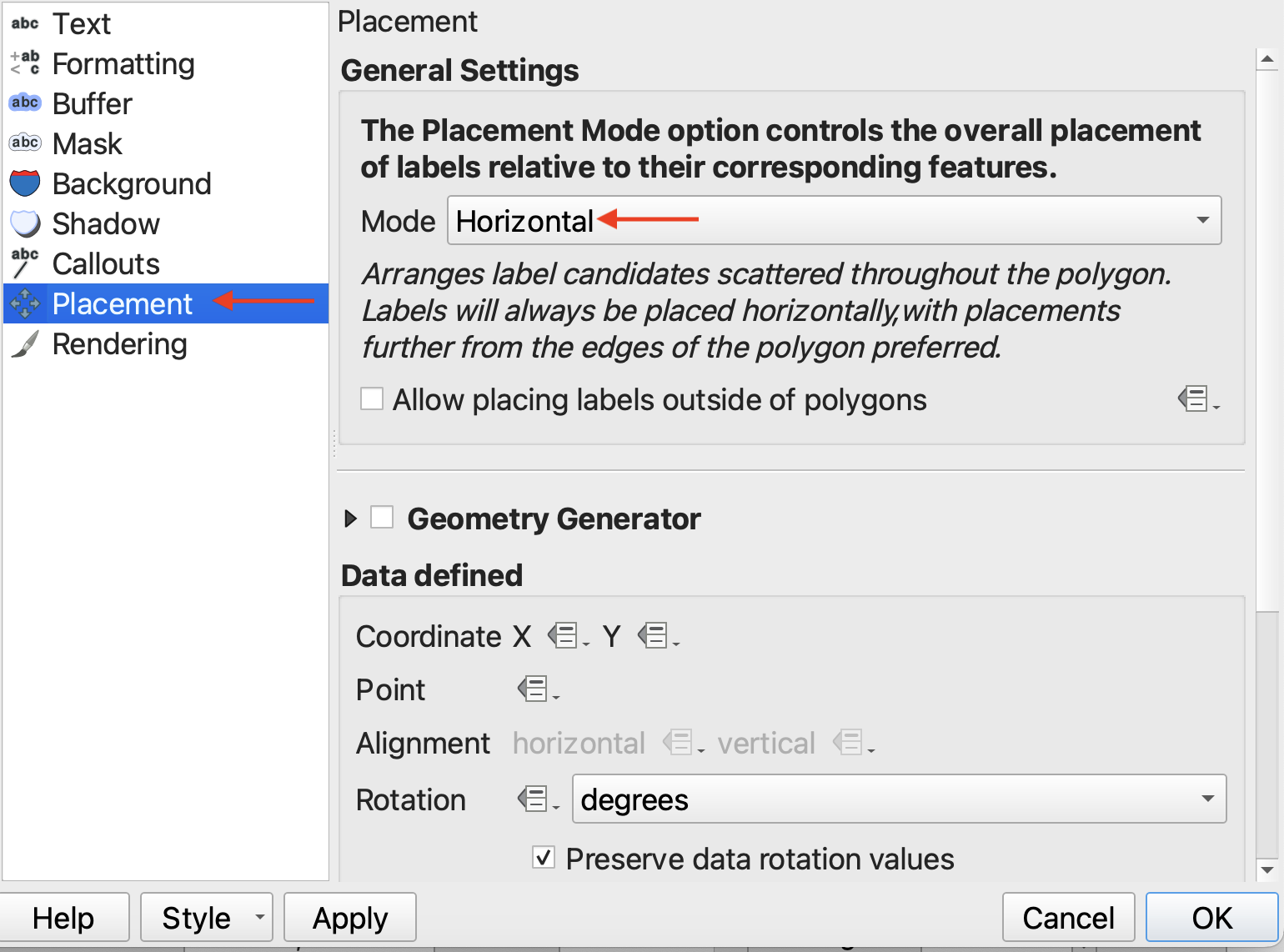 - 2.3 Then, go down to Placement and change the placement to horizontal.