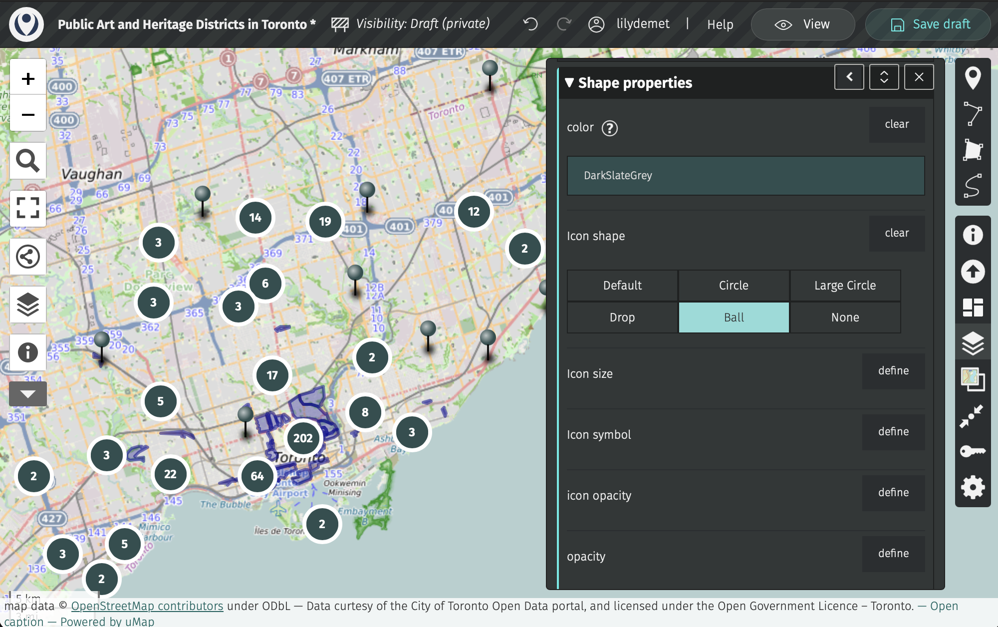 Now, expand Shape properties. Here, you can customize the icon color and shape. Remember to Save your map.