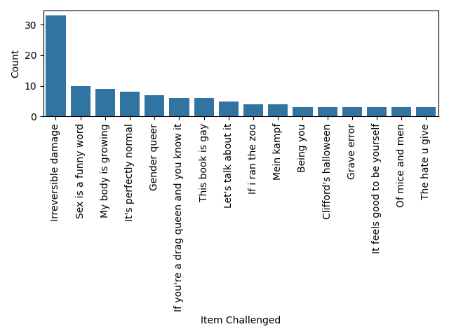 sns.barplot(data=item_counts_df, y="Count", x="Item Challenged", ax=ax2)